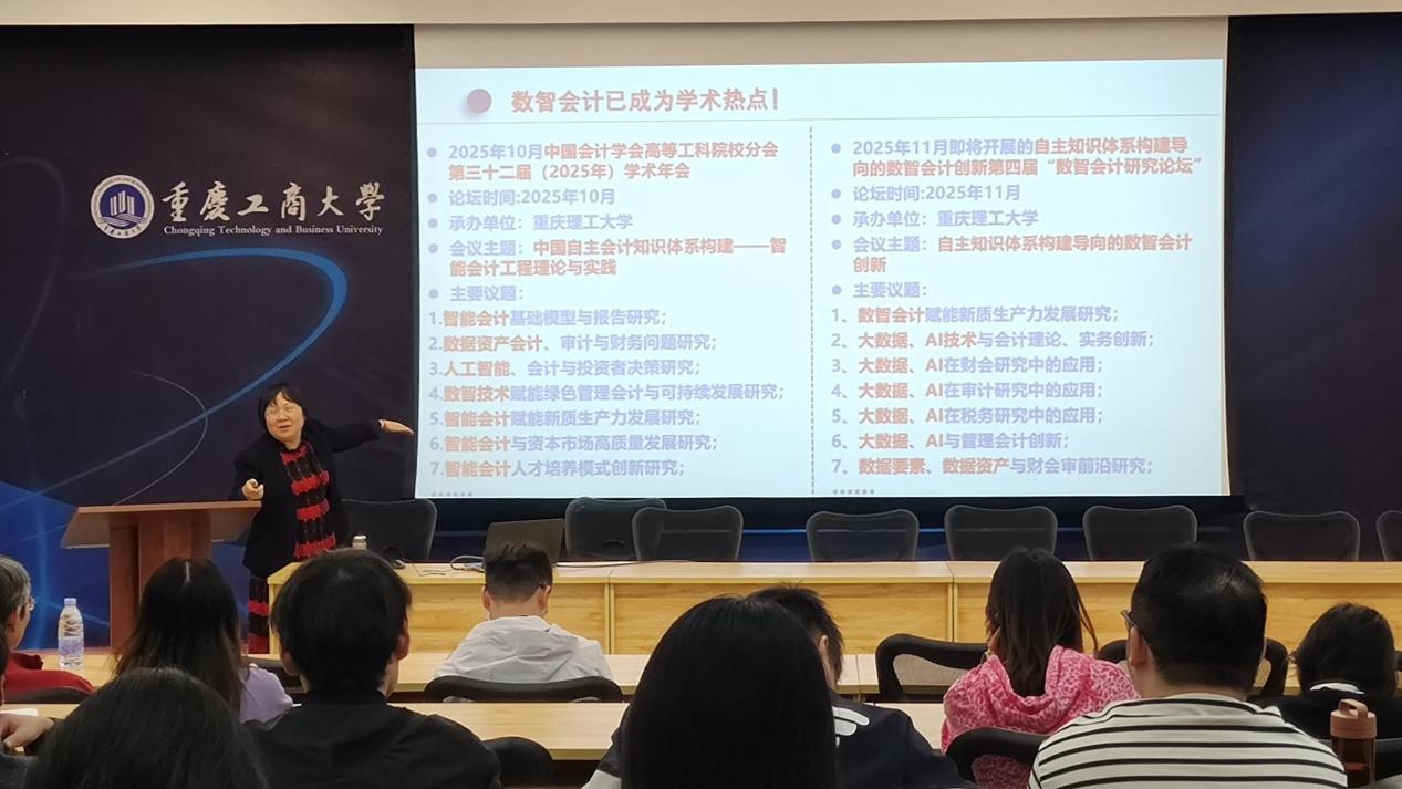 2025年10月23日,重庆工商大学会计学院在博智楼7108会议室成功举办第六十五期会计/审计名家大讲堂。本次大讲堂邀请杭州电子科技大学信息工程学院特聘教授王泽霞带来 “数智时代下会计理论的变革与创新实践” 主题学术讲座。