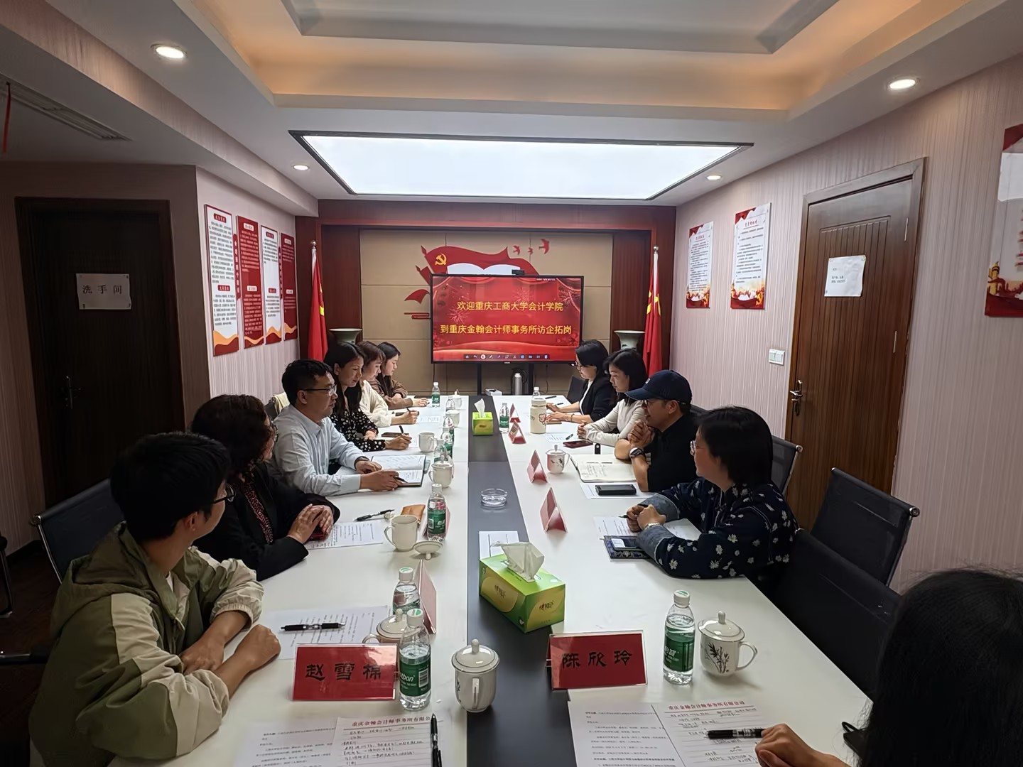 为推动本、研学生就业工作,深化产教融合、推进校企协同育人,2026年4月8日下午,重庆工商大学会计学院赴重庆金翰会计师事务所有限公司访企拓岗并开展研究生教育合作交流座谈会,会议在金翰会计师事务所顺利举行。